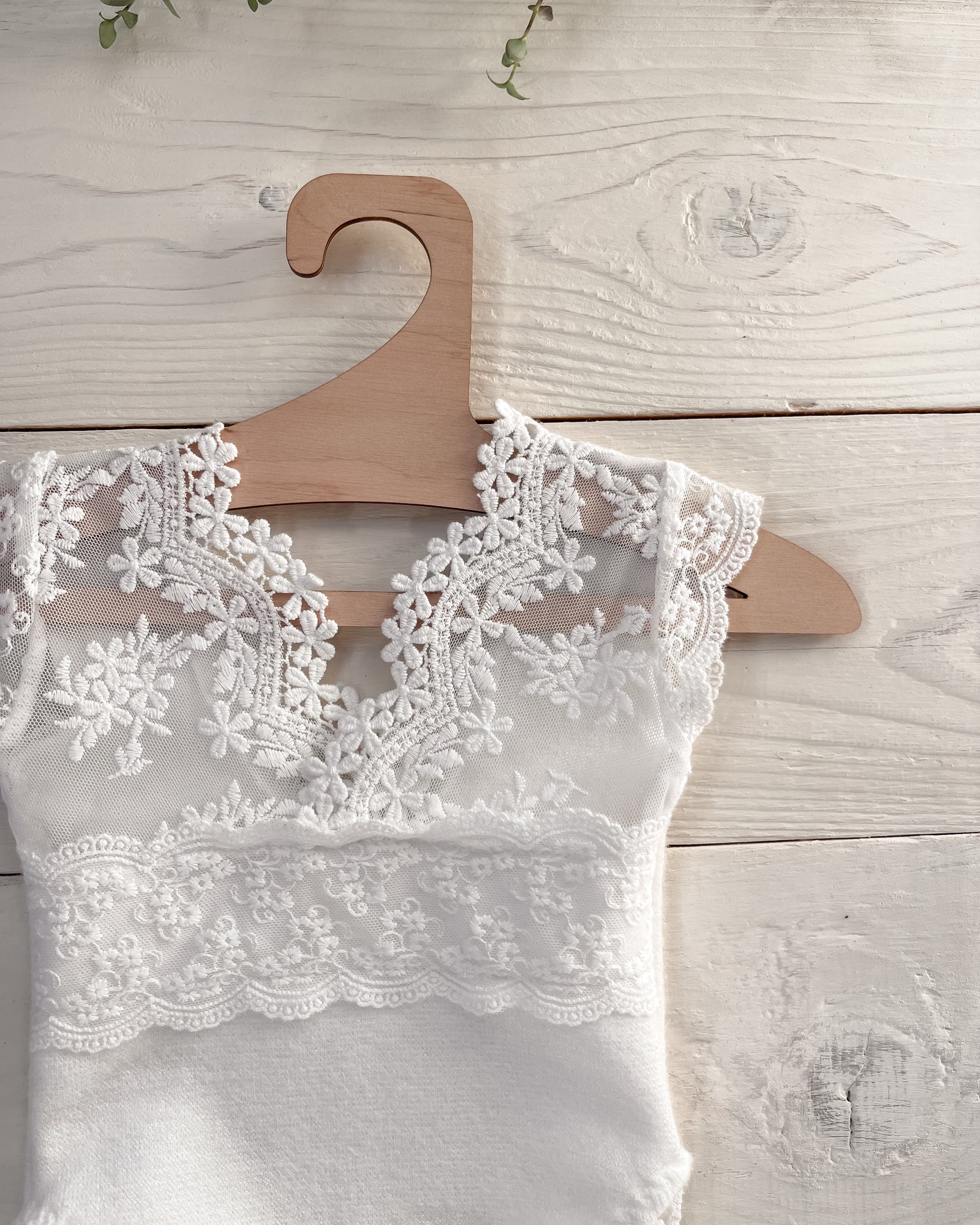 • jemné krajkové detaily, které zvýrazní křehkost miminka