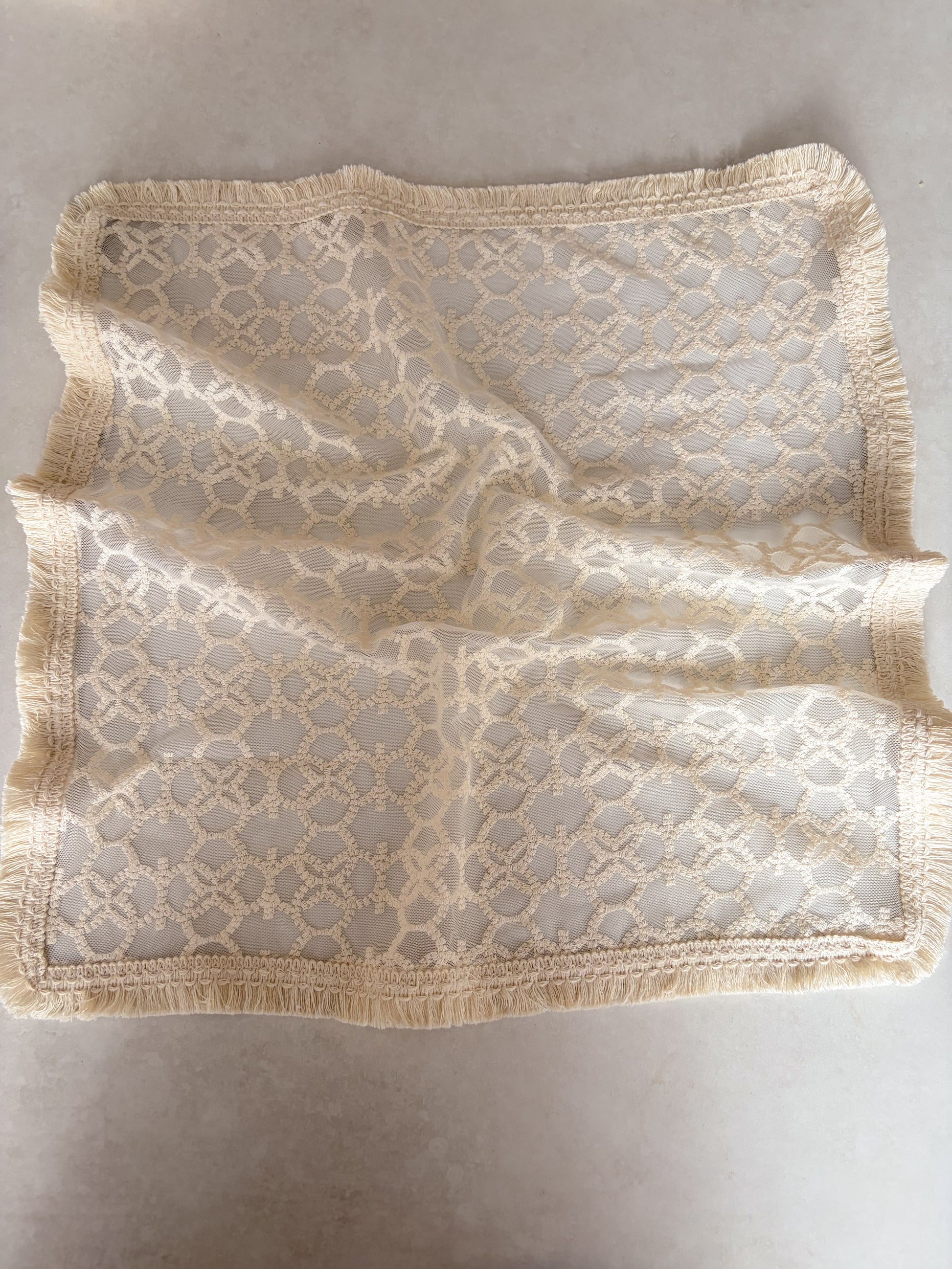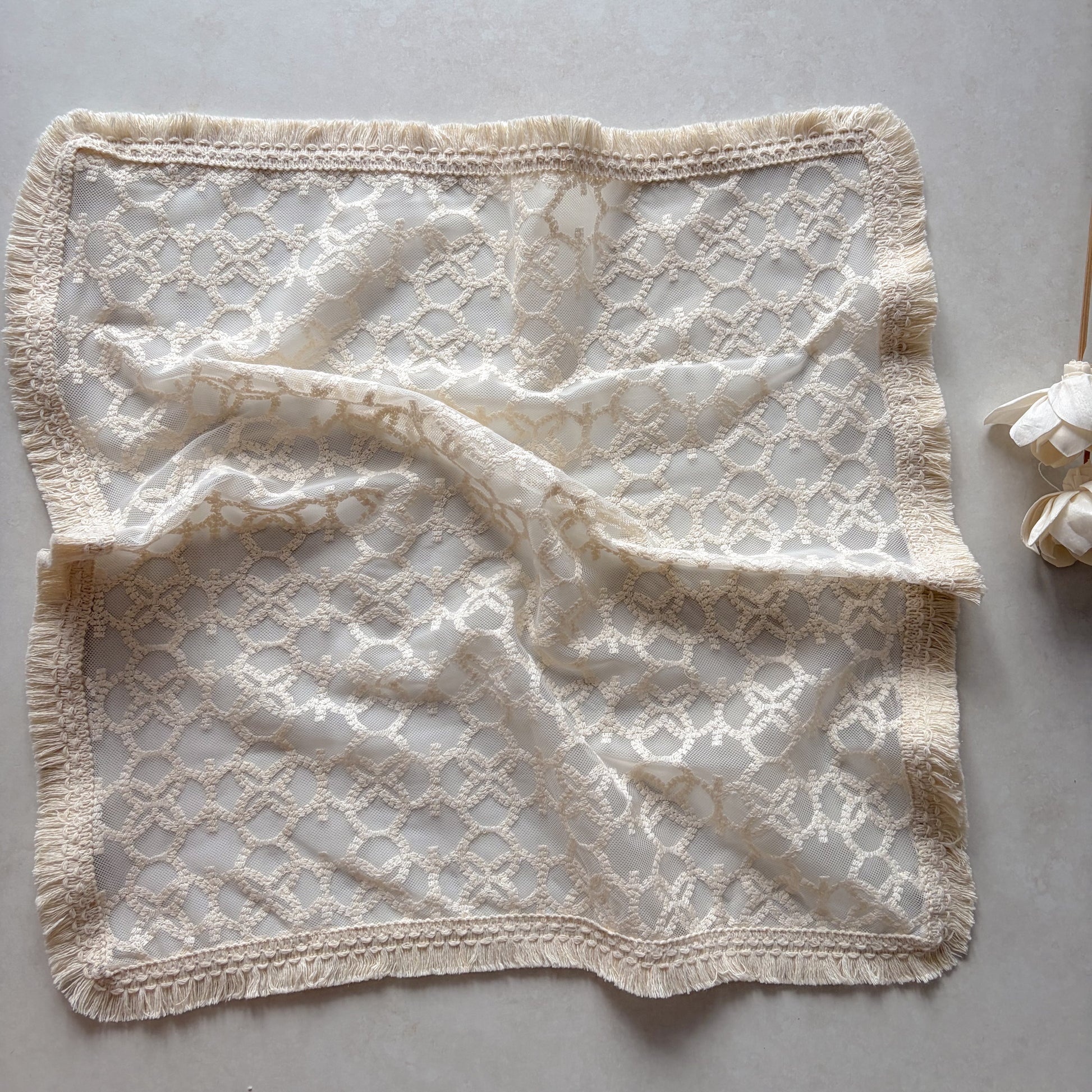 • Materiál: Prémiová vyšívaná krajka s třásněmi.