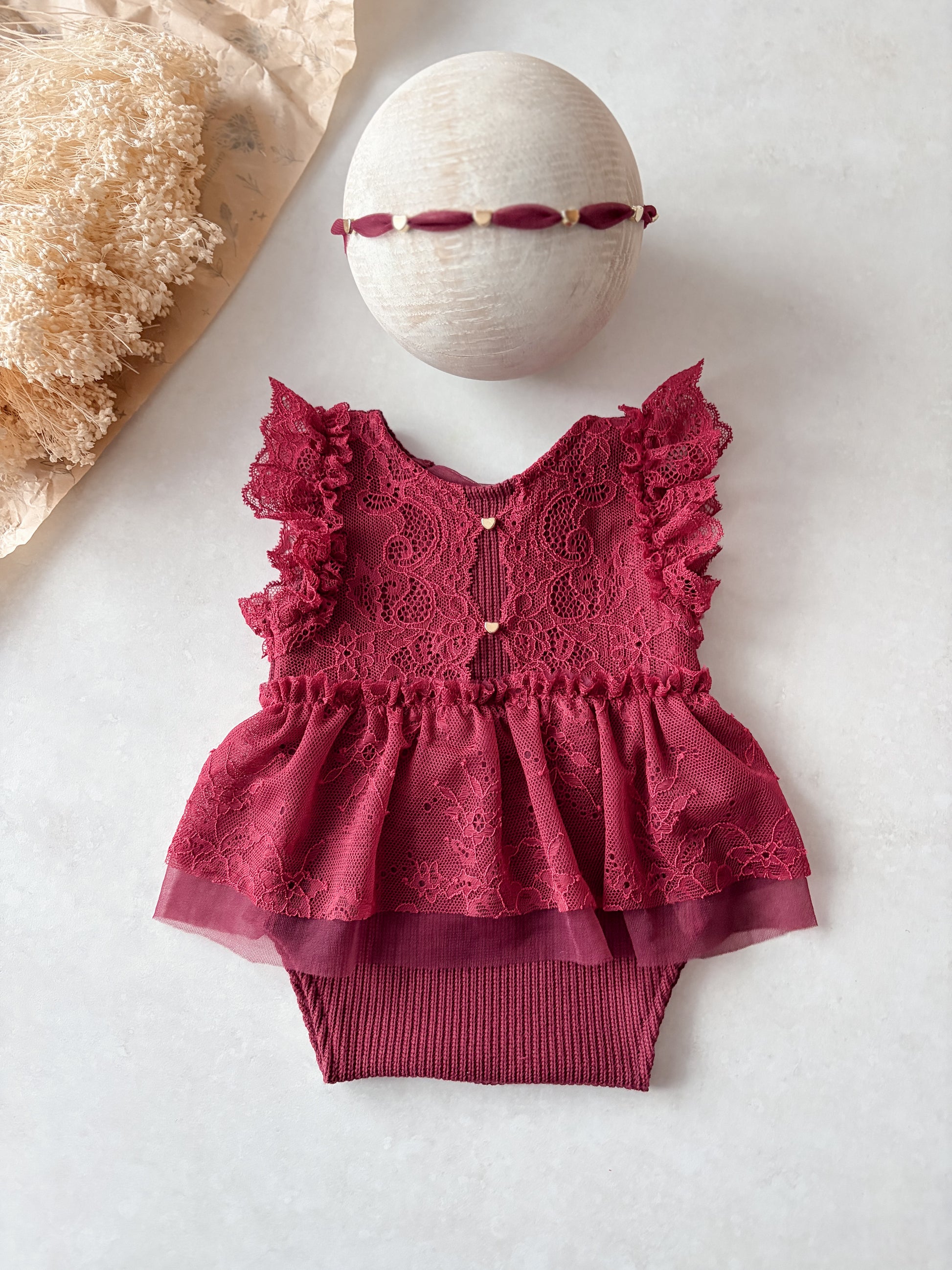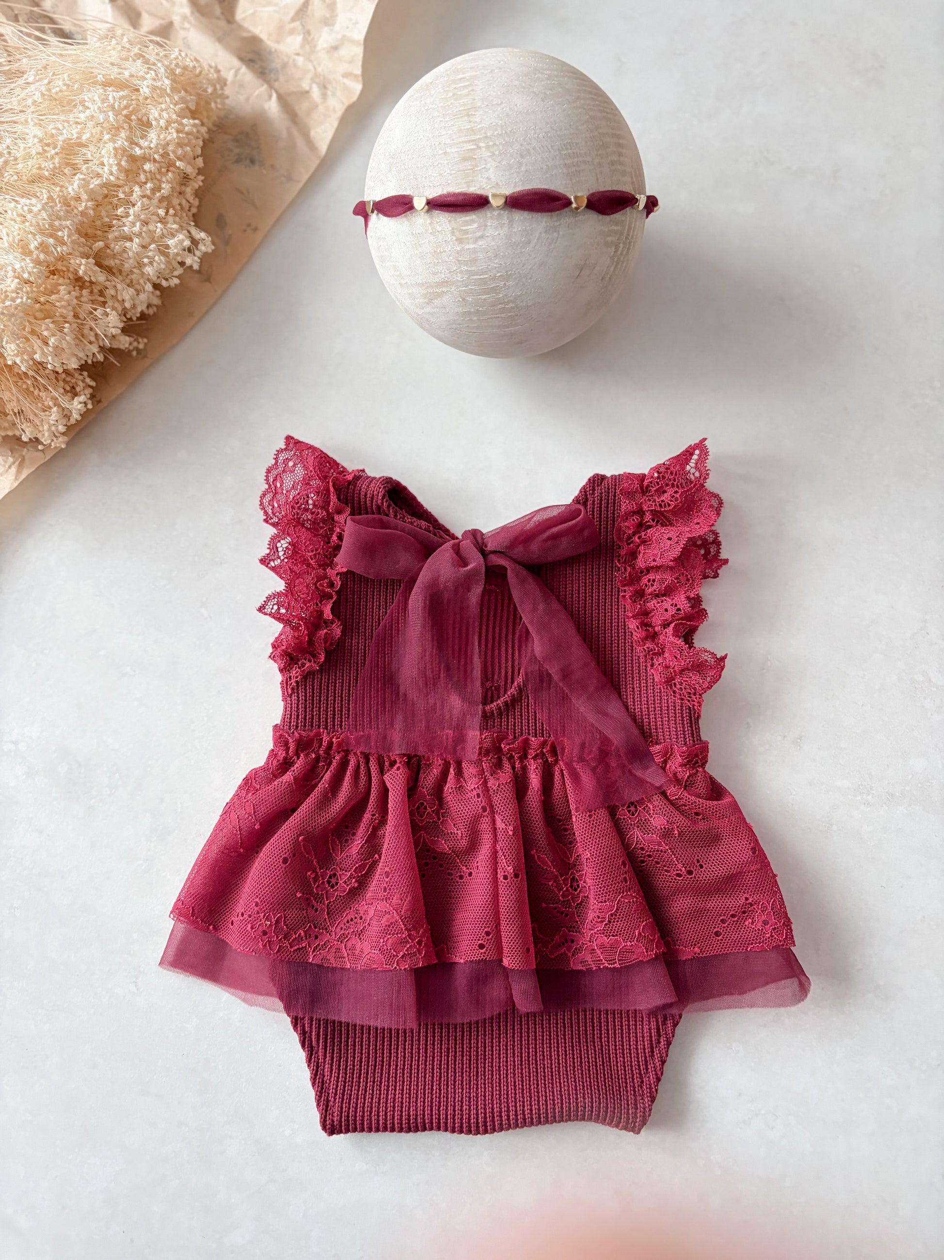 Šaty Scarlett ve vínovém odstínu jsou navrženy pro tvorbu elegantních newborn scén s důrazem na texturu a detail. Tento model kombinuje klasické pletené prvky s bohatým zdobením ♥️